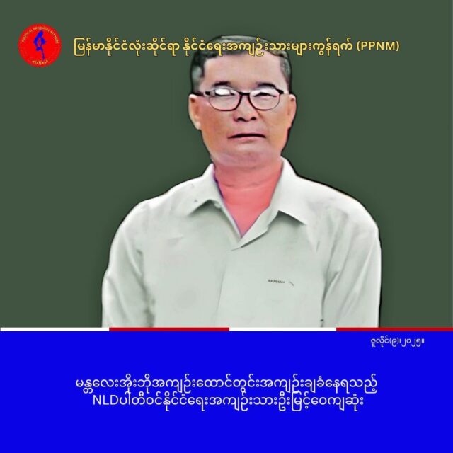 မန္တလေးအိုးဘိုအကျဉ်းထောင်တွင်းအကျဉ်းချခံနေရတဲ့ NLD ပါတီဝင် တစ်ဦးဖြစ်တဲ့ နိုင်ငံရေးအကျဉ်းသားဦးမြင့်ဝေဟာ အူတက်ပေါက်ရောဂါ နဲ့ ဇူလိုင်လ(၈)ရက်နေ့ မနက်အစောပိုင်းမှာ သေဆုံးခဲ့ရတယ်လို့ မြန်မာနိုင်ငံလုံးဆိုင်ရာနိုင်ငံရေးအကျဉ်းသားများကွန်ရက် – PPNM က ဒီနေ့မှာ သတင်းထုတ်ပြန်လာပါတယ်။