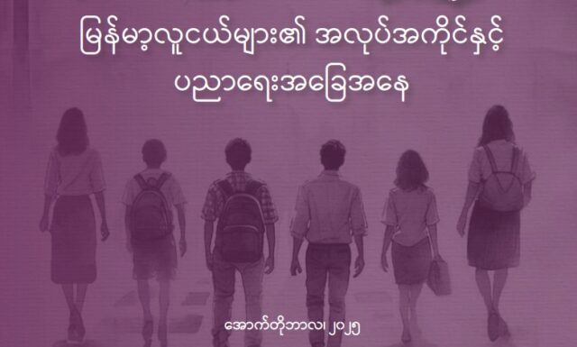 မြန်မာ နိုင်ငံအတွင်းမှာ နိုင်ငံရေးမတည်ငြိမ်မှု၊ စီးပွားရေးကျ ဆင်းမှု နဲ့ လူမှုရေးပြဿနာတွေကြားမှာ လူငယ်တွေဟာ သင်ယူမှု နဲ့ အလုပ်အကိုင်ရရှိမှု လမ်း ကြောင်းတွေမရှိတာကြောင့် ဆိုးရွားစွာ ယိုယွင်းလာနေပြီးတော့ နိုင်ငံတွင်းမှာ ရှိနေတဲ့ လူငယ်တွေကို ပြည်ပကို ရွှေ့ပြောင်းဖို့ တွန်းပို့နေရုံသာမကဘဲ နိုင်ငံအ တွင်းမှာလည်း ကိုယ်ပိုင်စွမ်းရည်တွေကို အကောင်အထည်မဖော်နိုင်ဘဲ ခြေ လှမ်းတွေ ရပ်တန့်ခံနေရတဲ့ အတွက် နောင်လာမယ့် မျိုးဆက်တစ်ခုလုံးရဲ့ အနာ ဂတ် နဲ့ မြန်မာနိုင်ငံရဲ့ ရေရှည်ဖွံ့ဖြိုးတိုးတက်မှုအလားအလာကို ခြိမ်း ခြောက်နေတာကိုလည်း တွေ့နေရတယ်လို့ ဆိုထားပါတယ်။